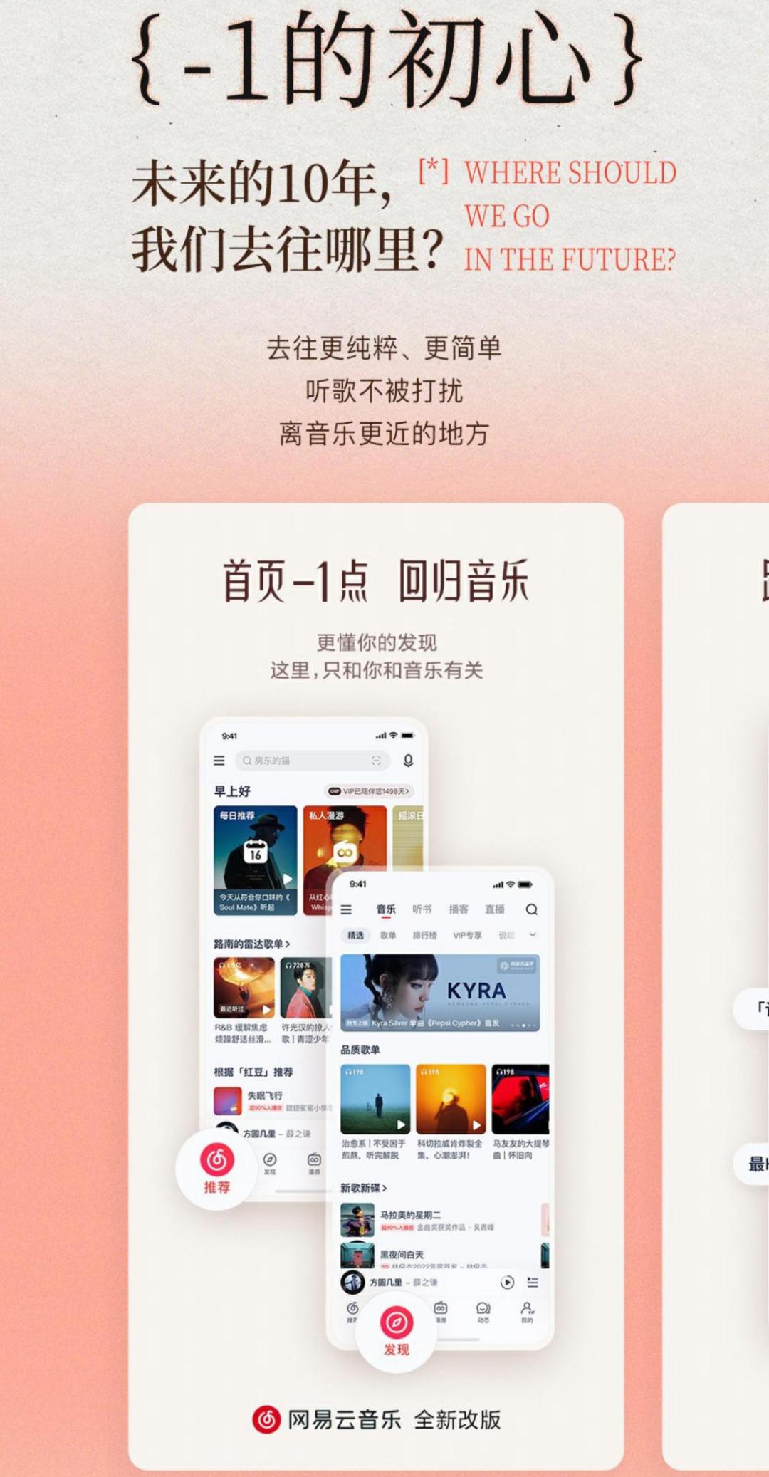 今年1月,网易云音乐App官宣全新改版,并于同日发布了用户公开信,以道歉的口吻对过去大量与音乐无关的问题向用户致歉,同时通过将品牌Slogan改回2013年的版本——“发现好音乐”,强调新版本将回归初心。