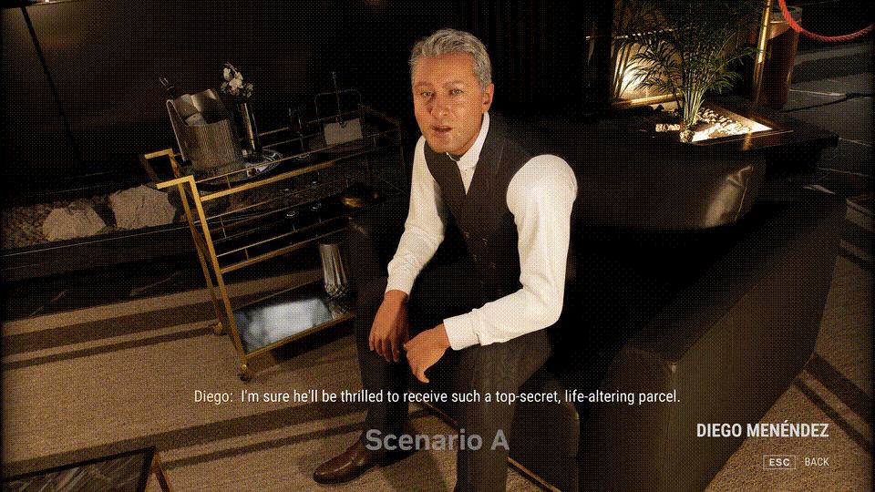 每个场景都侧重于NPC行为、环境和上下文意识的不同方面;一系列实时反应和动画;以及连续对话、协作和战略决策。