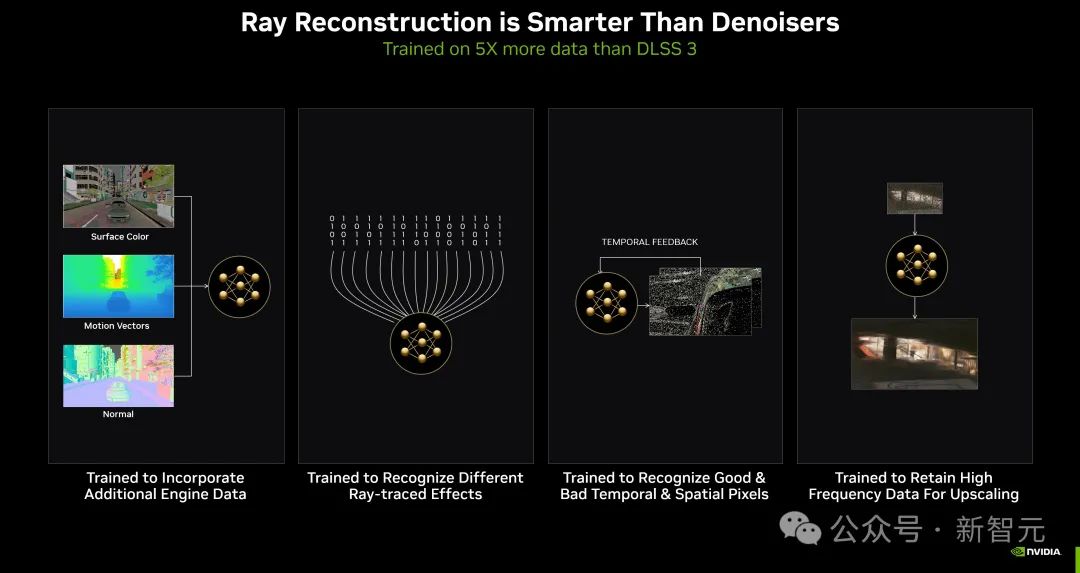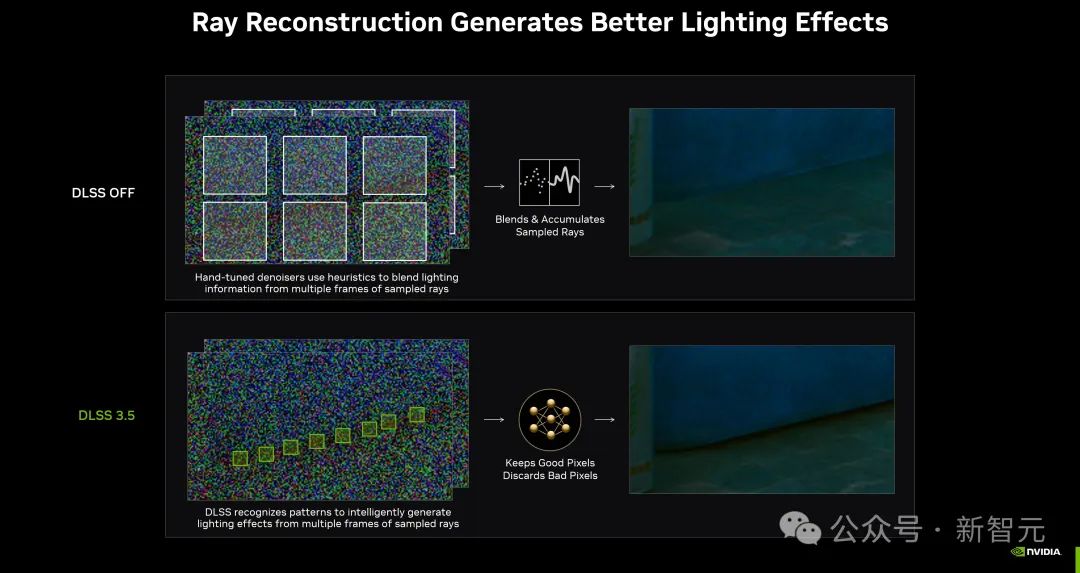 原因在于,它包含了英伟达全新的DLSS光线重建技术(Ray Reconstruction),利用全新统一的AI模型,取代了多个人工设计的光线追踪降噪器。