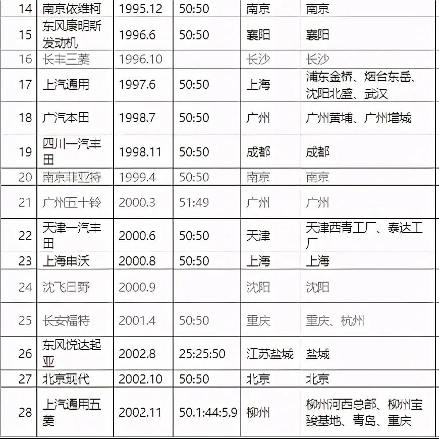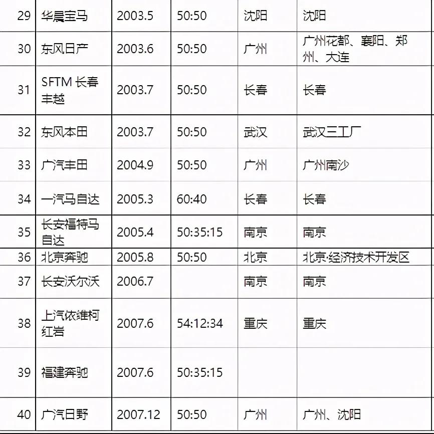生产汽车...的中外合资、合作企业的中方所占股份比例不得低于 50% ,合资公司不得超过两家。——《汽车工业产业政策》( 1994 )