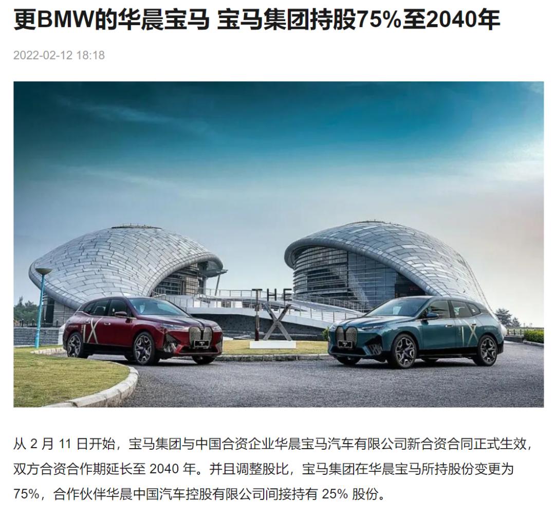 更BMW的华晨宝马 宝马集团持股75%至2040年