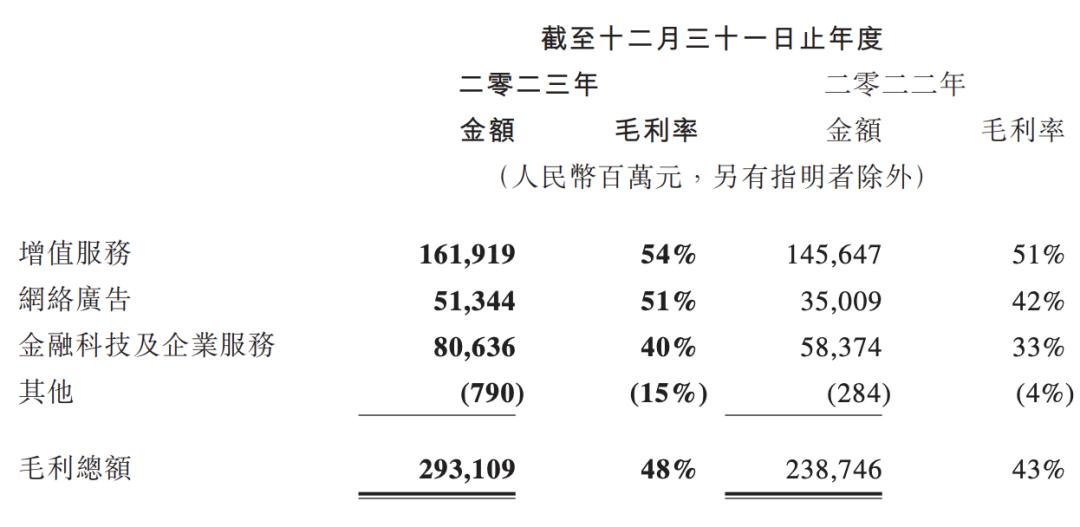 腾讯2023年三大业务毛利率图源 / 腾讯财报