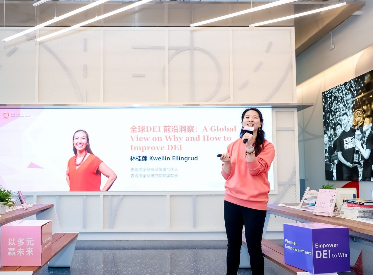 女性联盟(WAG)致力于聚焦全球视野,深耕本土实践,汇聚跨企业力量,共同推动中国职场多元包容文化发展。本次活动邀请了麦肯锡全球资深董事合伙人,麦肯锡全球研究院联席院长Kweilin Ellingrud (林桂莲 )在线解读了世界经济论坛与麦肯锡联合发布的DEI 灯塔报告、麦肯锡最新DEI 报告《DiversityMattersEven More》 ,带来DEI 全球视野。女性联盟(WAG)现场重磅首发全球BSI 英国标准协会《工作场所DEI行为准则》中文版,女性联盟(WAG)创始人兼CEO 陈永敏对准则进行解读,通过DEI 五步法、五步计划等分享为践行DEI 战略的组织提供实用性的指导和建议。