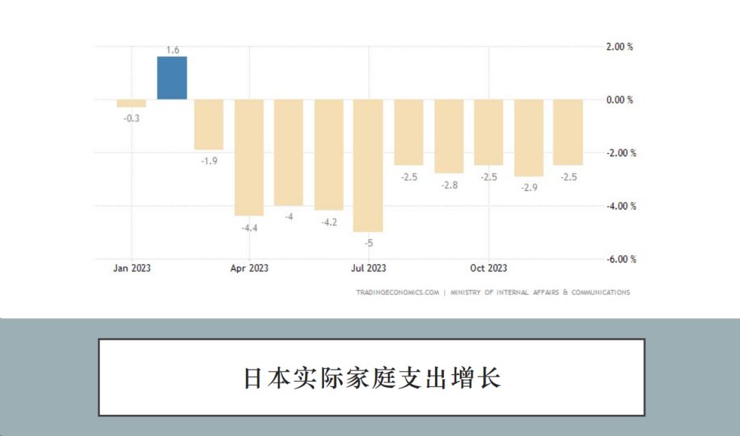 哪件事在发生?我们再来看,扣除掉了物价变动后日本实际家庭支出的增长状况,在过去的12个月的时间里边有11个月是大幅度的下降。日本国内的需求是在下行的,国内的消费需求是不足的,这一点上没有发生任何根本性的变化。所以从这个角度来看,日本的国内经济的这种动力或者韧劲,去跟美国去对比一下的话,我就觉得这完全是两个不同的概念,很难放到一起去进行对比。