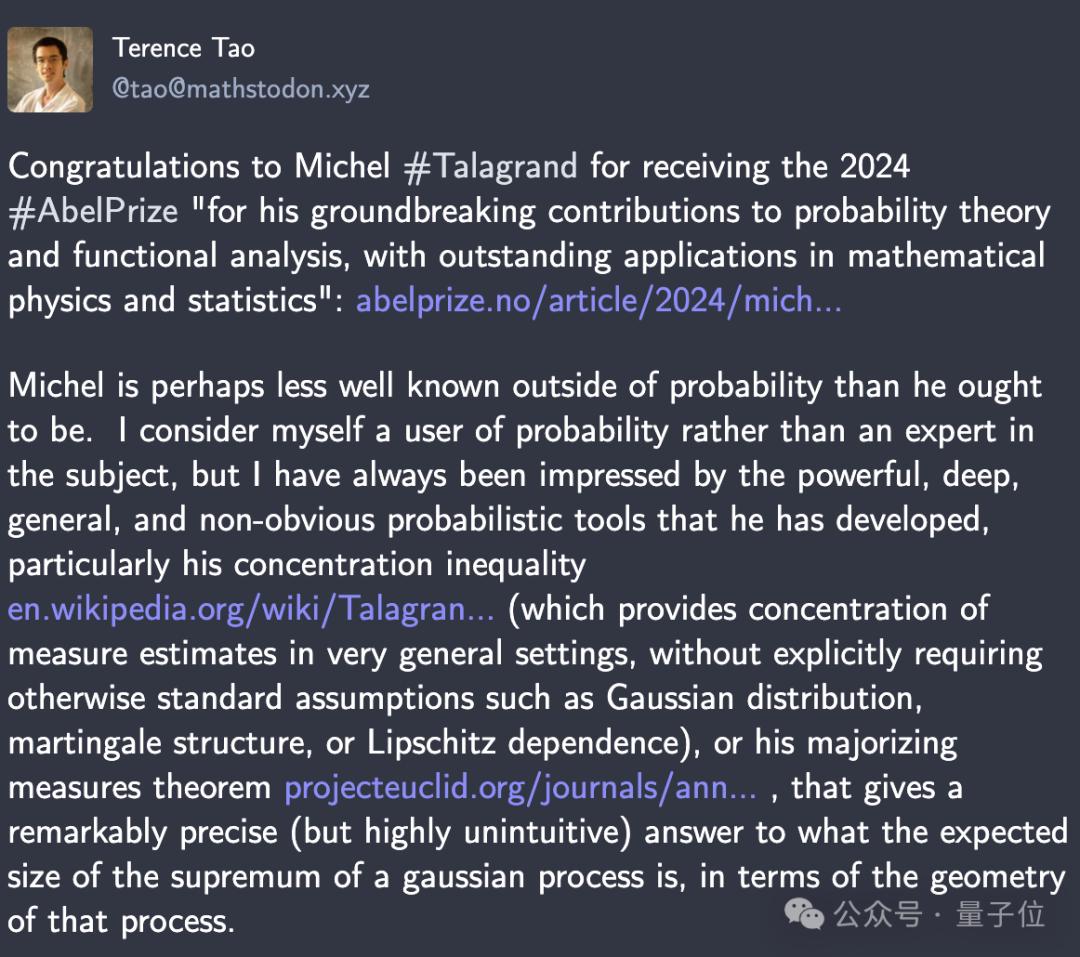 传奇大爷拿下“数学界诺贝尔奖”;陶哲轩祝贺:他本应更知名