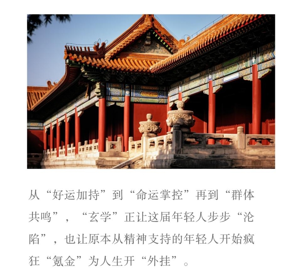 “玄学”到来的恰逢其时,其所带来的情绪价值和精神能量,让这些身处困惑与迷茫中的年轻人得到了一种由内而外的“精神疗愈”。