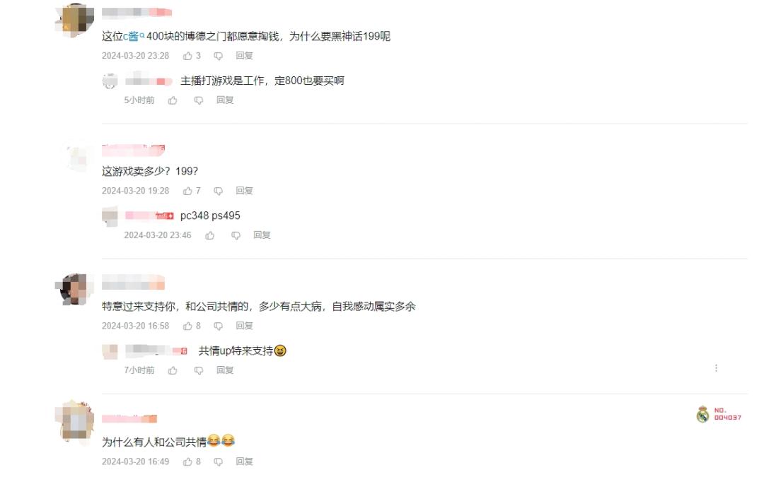 这部分网友认为,这样一款代表了国产3A的产品,应该要大力支持,298才应该是起售价,而C酱作为一个游戏主播,说出这样的话,是不支持国产3A游戏的发展。