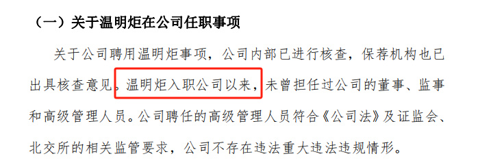 这次举报顺带还扯出一桩落马贪官"旋转门"事件。历史报道显示原国土资源部副司长温明炬因收受国源科技实控人董利成70万元及公司20%股份,在2011年被判处有期徒刑12年,后因在狱中表现良好,减刑提前出狱,2019年出狱后便直接入职国源科技,职务为公司副总裁。