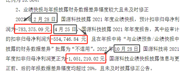 2022年12月底,国源科技及董利成等人收到北交所出具的警示函,违规事实包括会计差错更正、业绩快报与年报披露财务数据差异幅度较大且未及时修正。