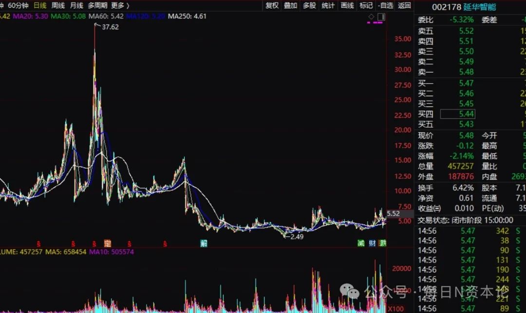 上市后,延华智能的股价总体来讲波动比较剧烈。从2007年到至今,股价曾最高摸至37元附近,最低探底至2.49元。期间,有数次股价翻倍的走势。尤其是,2014年4月到2015年4月,该股曾经出现4倍的牛股行情。