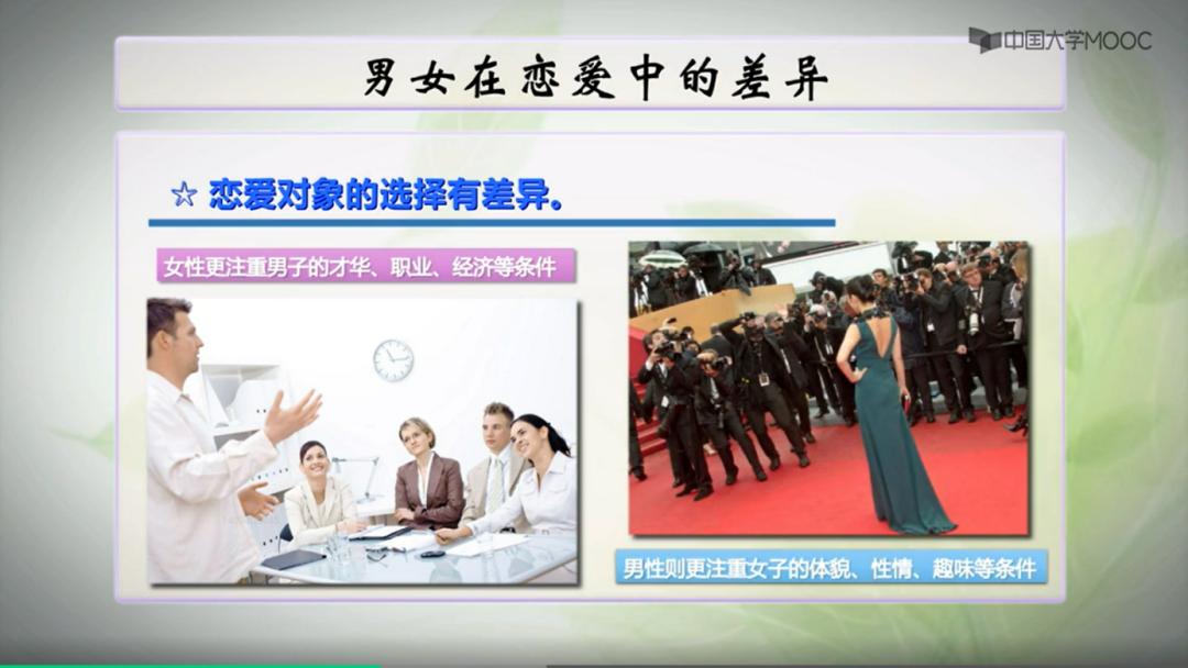 大学的恋爱心理学的授课内容有时候仍带有性别刻板印象。(图/慕课截图)