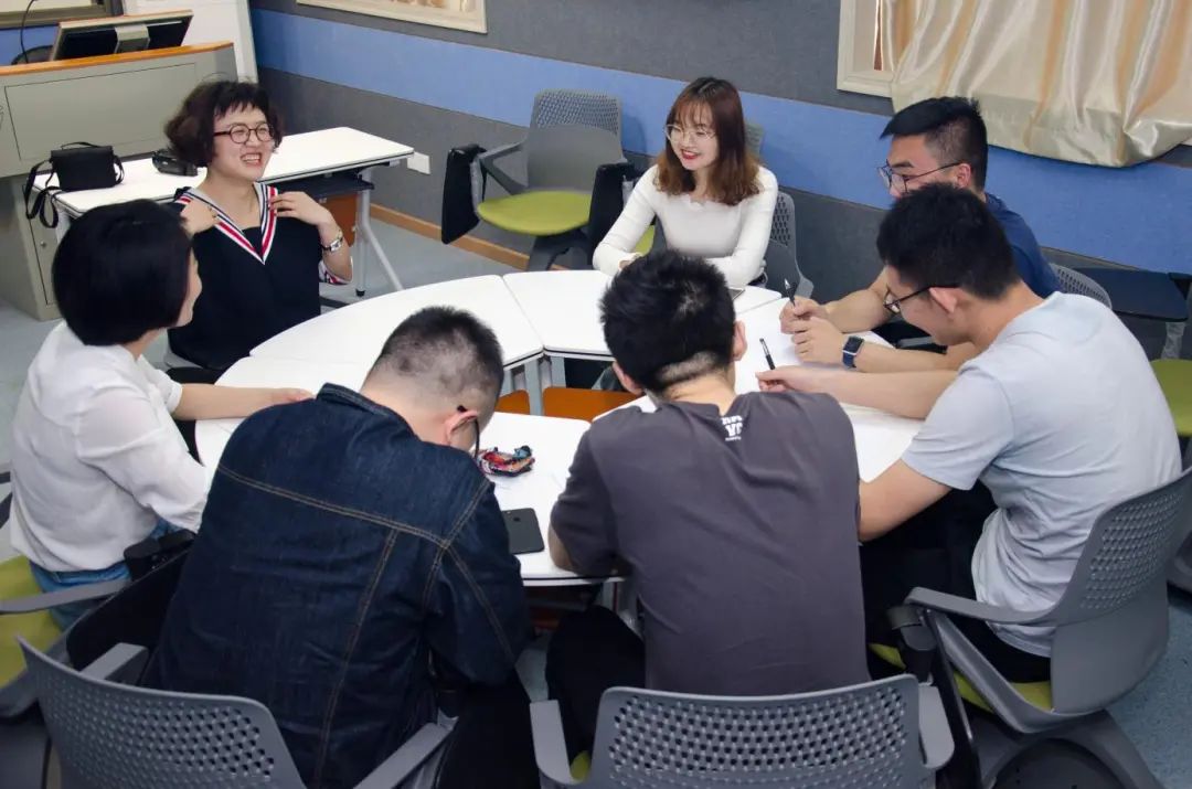 张晓文和学生在课堂上进行讨论。(图/受访者提供)