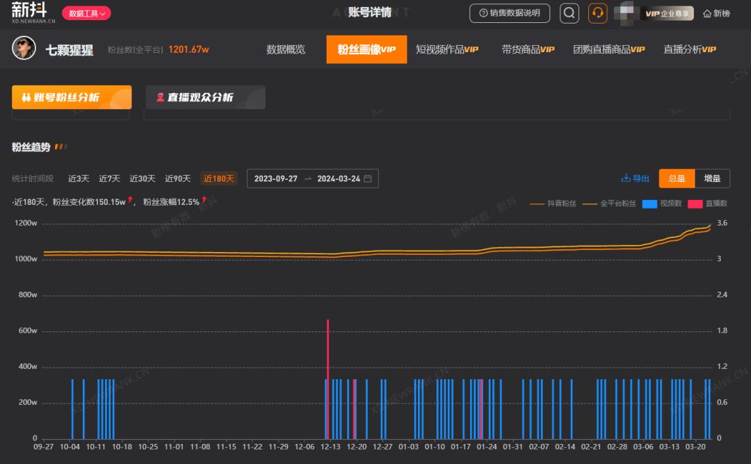 直到3月初,《重生之我在爽剧当演员》系列发布后,账号再次迎来涨粉小高峰,新榜旗下数据工具显示,“七颗猩猩”近一月全网涨粉近300万。