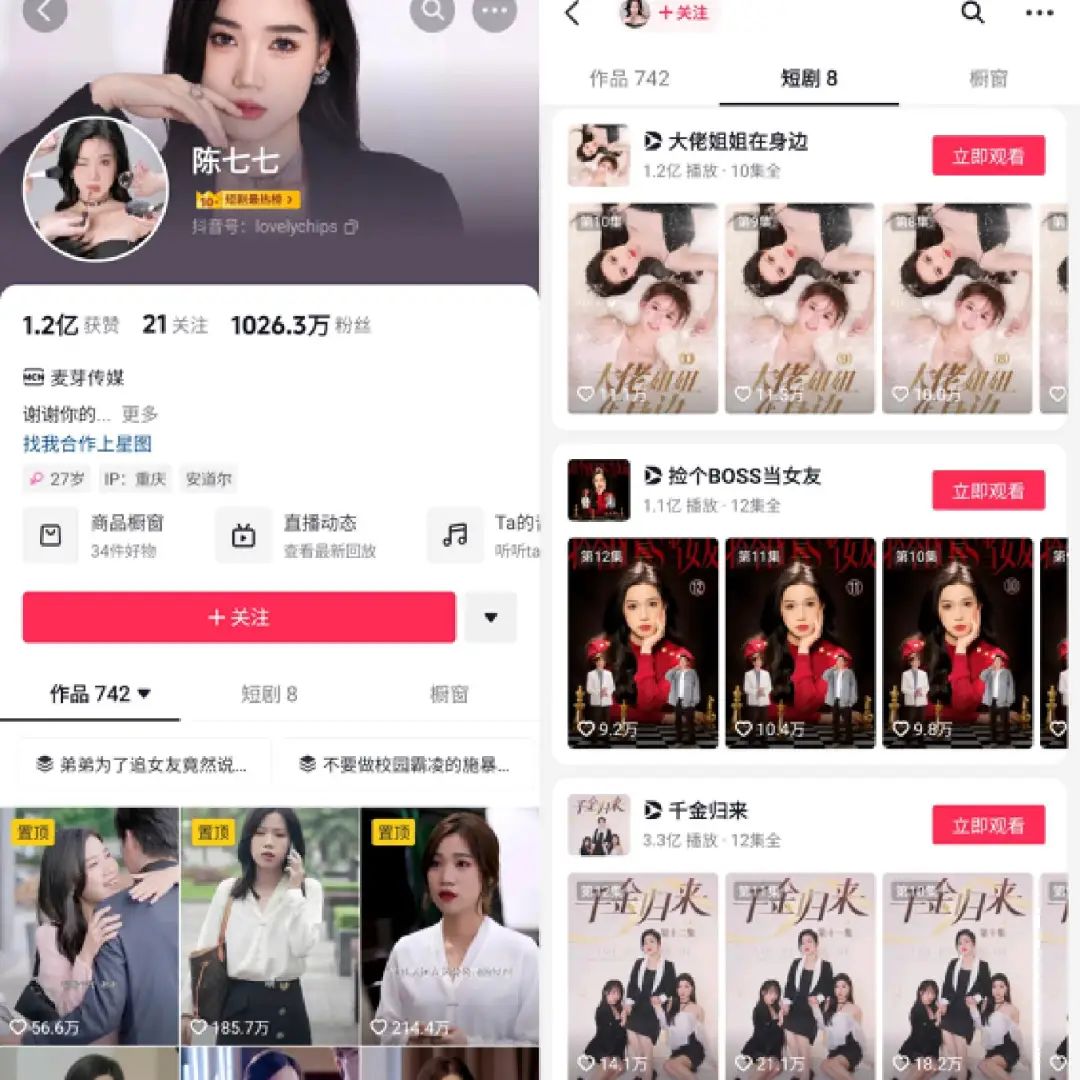 梁彪举例说,演绎情感剧情的“陈七七”目前达到了千万粉,拍摄了《千金归来》等多部短剧,“如果粉丝量想突破到1500万到2000万,仅仅有流量和商业化还不够,更重要的是可以通过短剧突破原有的粉丝圈层,触达更多新粉”。