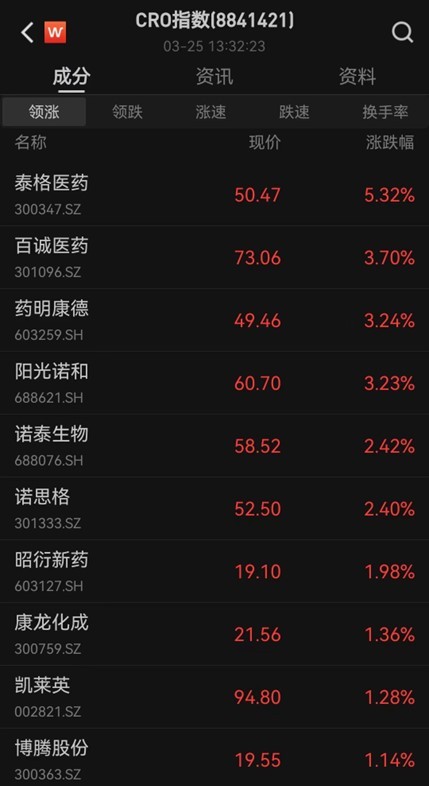 CRO概念股反弹,泰格医药涨近5%,康龙化成、美迪西、昭衍新药、药明康德等涨超3%。港股药明系也集体大涨。