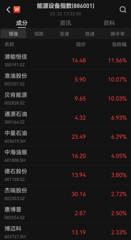 地缘冲突推升油价,油气板块走高,贝肯能源、准油股份涨停,中曼石油、通源石油、博迈科等跟涨。