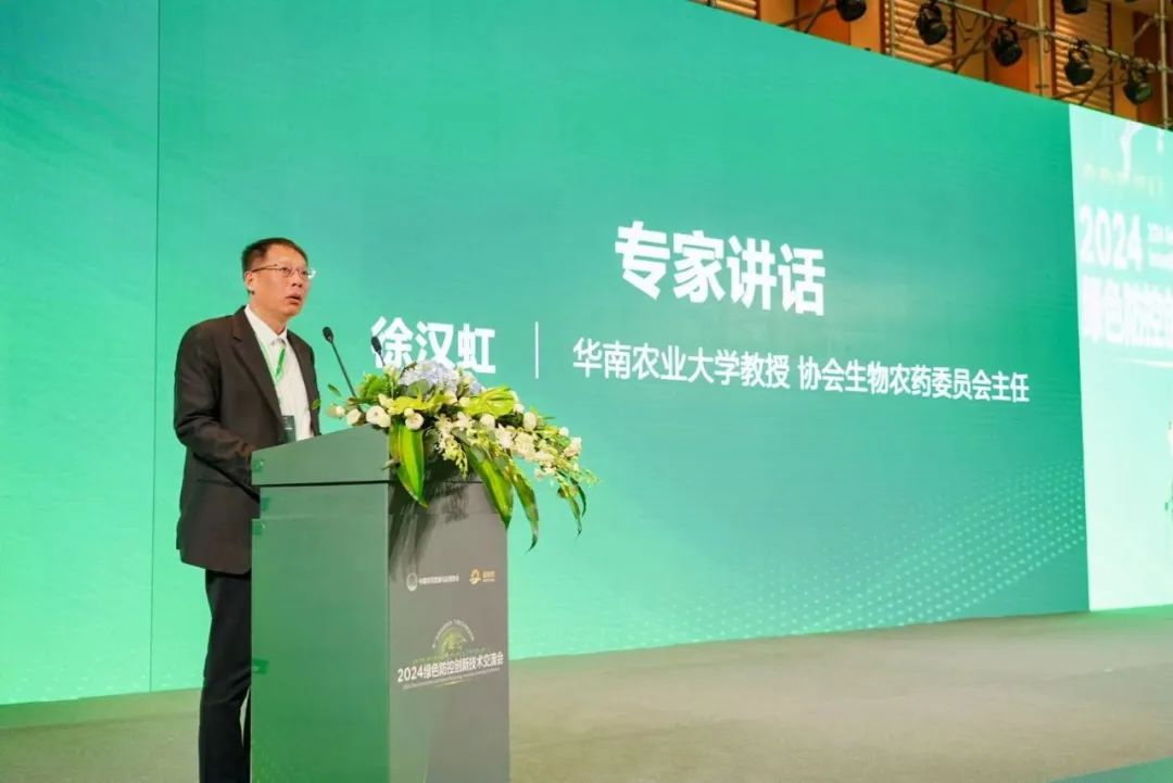 华南农业大学教授、协会生物农药委员会主任徐汉虹则聚焦《生物农药发展现状及趋势》,表示生物农药发展是国家的重大需求,并分享了生物农药的理论创新与生产新途径,通过现有农业生产设施和多项生物技术的研发提高绿色农业应用效率,降低成本,推动生物农药普及和实用化。