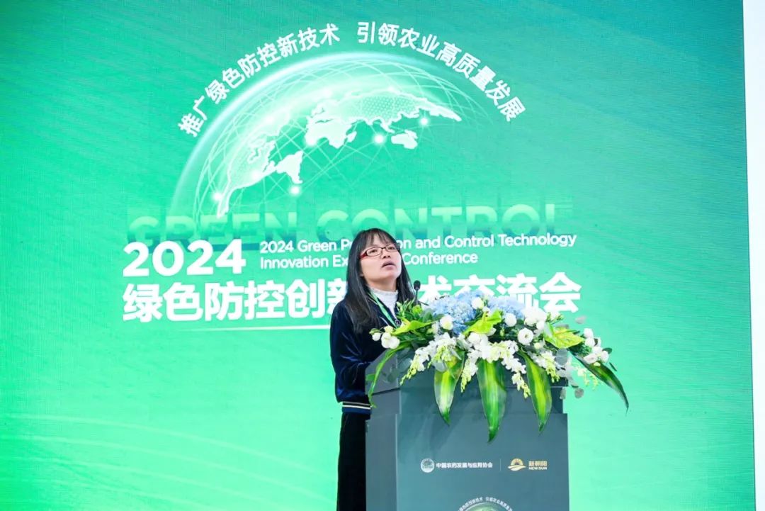 全国农技推广服务中心副处长刘慧作了《绿色防控发展现状及趋势》的报告,强调了科学用药技术,包含推广应用高效、低毒、低残留农药;推广应用新型植保机械,超低量喷雾技术;统防统治与绿色防控融合。2023年全国主要农作物病虫害绿色防控覆盖率达到54.1%,年减少化学农药使用量2.0万吨,推广生物农药效果显著。