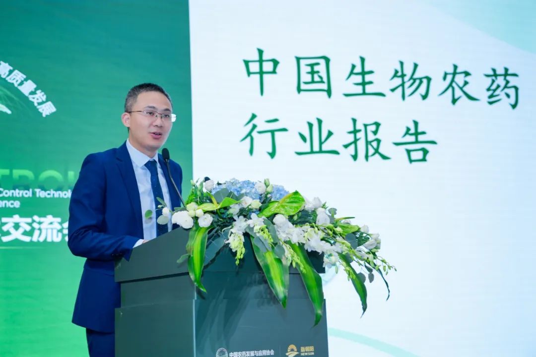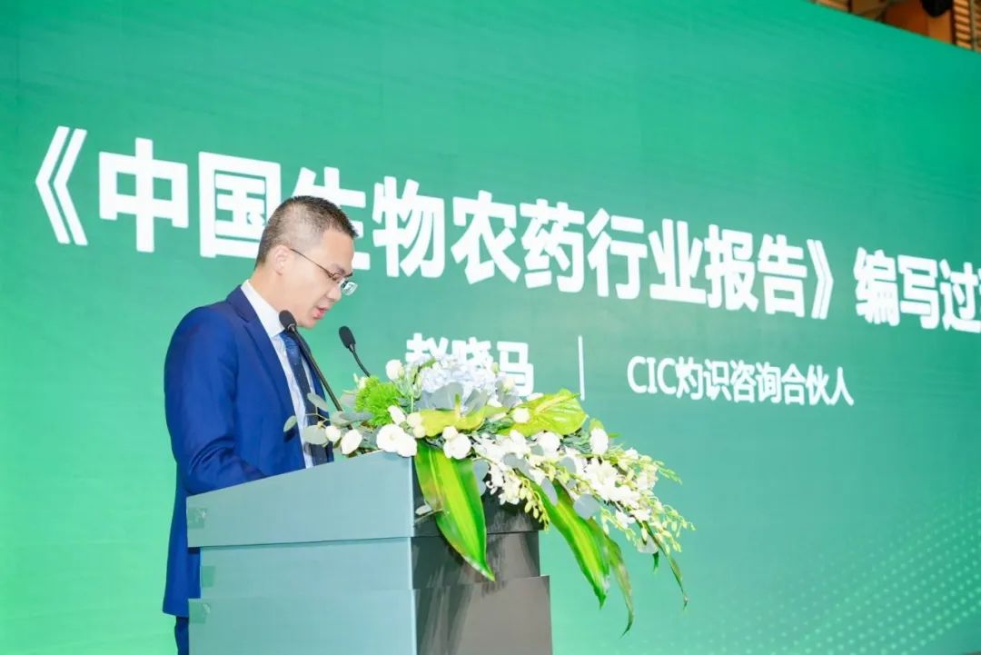 CIC灼识咨询合伙人赵晓马先生进行《中国生物农药行业报告》解读,他指出,当前中国农药生产以化学农药生产为主,生物农药(含农用抗生素)市场规模占总农药市场规模超过10%。未来,随着国家农业高质量绿色发展战略的持续推进与落实,中国生物农药市场正在迎来广阔发展空间。