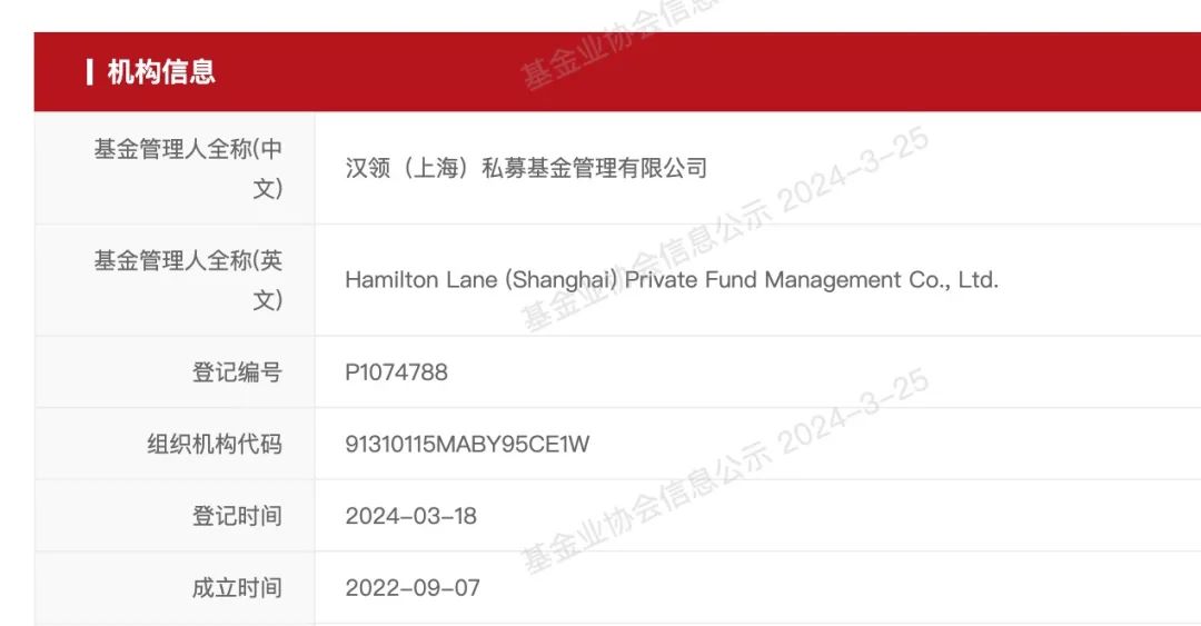 而背后基金管理人,正是汉领资本Hamilton Lane。1991年成立于美国费城,汉领资本至今执掌约9030亿美元资产(约6.5万亿人民币),是全球最大的私募股权投资机构之一。2022年,汉领资本成为上海第一家通过QFLP设立的S基金,去年上海办公室开始运营。