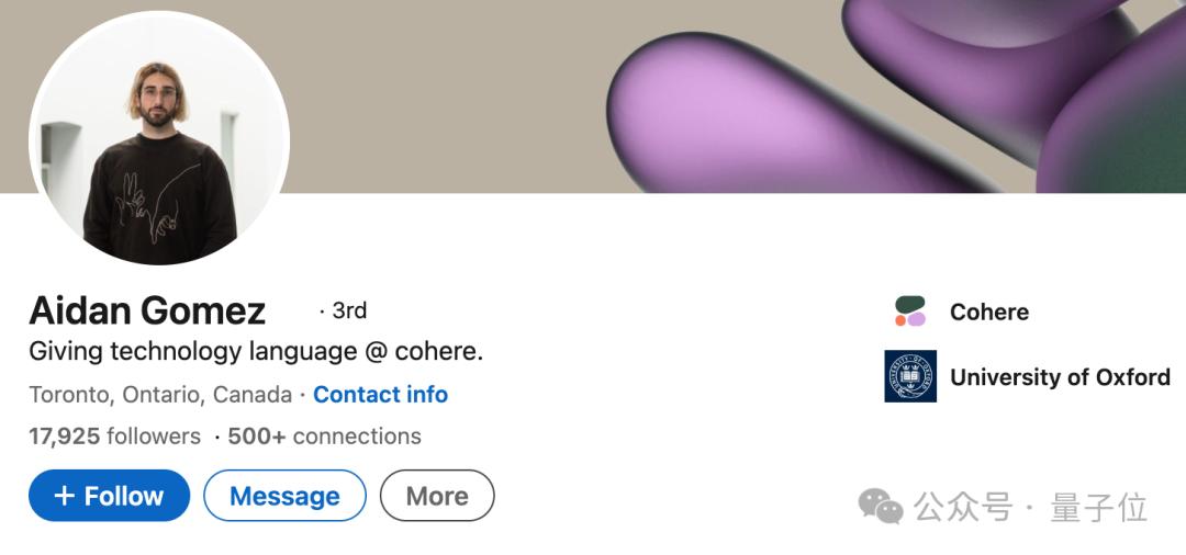 话说回来,第六位Aidan Gomaz(后简称割麦子,现AI公司Cohere创始人)是最年轻的,他在多伦多大学读大三时加入Hinton的实验室,主动给谷歌里各种写过有意思论文的人发邮件申请合作。