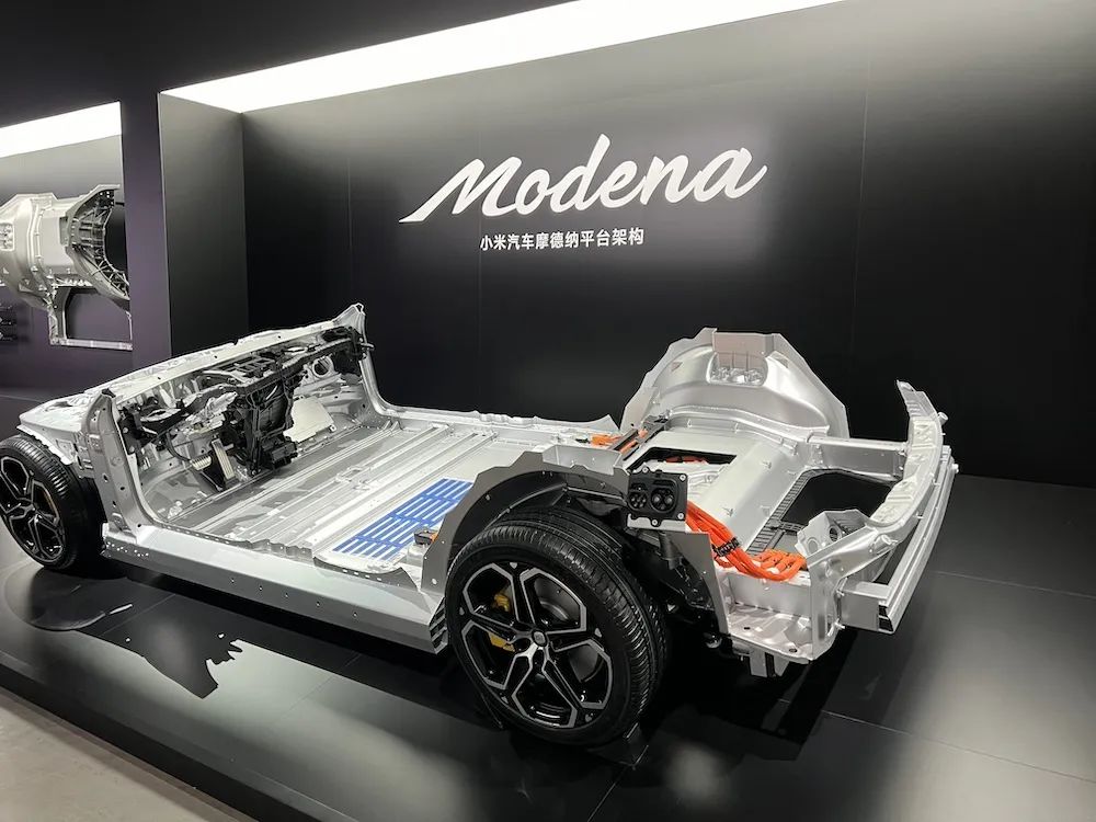 据推测,现场展示的底盘很可能与技术发布会后展示的相同,为小米汽车摩德纳架构的底盘展示模型。