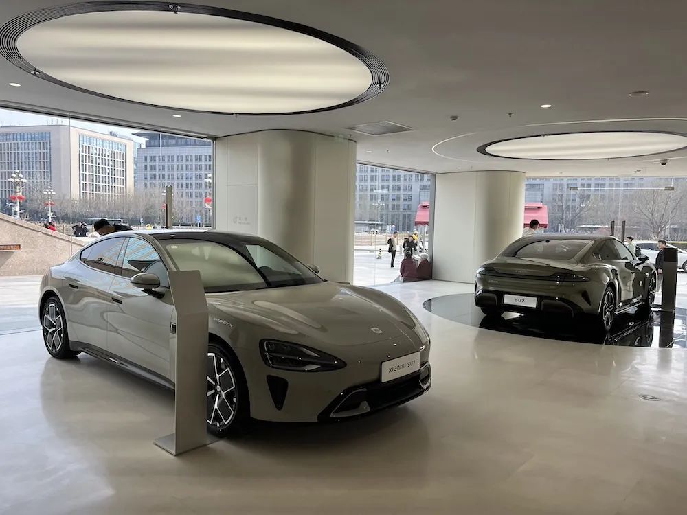 车东西3月25日消息,今日,小米SU7在国内各大店铺正式开始静态展示,车东西也第一时间来到了北京东方广场小米汽车旗舰店和另外一家2S店进行了实地探访。