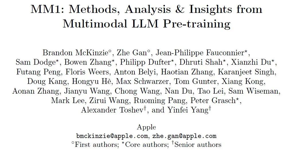 但在今年3月,苹果才发表了一篇论文,公布自己研发的MM1多态大语言模型。