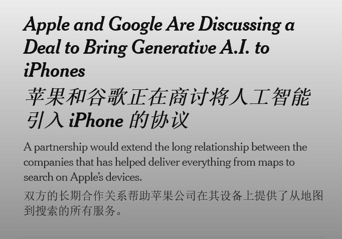 在国外,苹果找到谷歌,计划将Gemini模型集成到iPhone中。