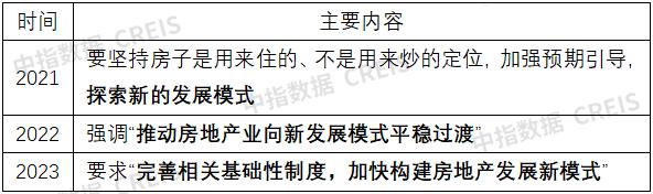 构建房地产发展新模式,是推动市场高质量发展和稳定的重要途径。2021年下半年开始,房地产市场进入深度调整阶段,行业加速优胜劣汰,2021年底中央经济工作会议首次明确提出房地产业要“探索新的发展模式”。2022年中央经济工作会议再次提及新发展模式,强调“推动房地产业向新发展模式平稳过渡“。2023年中央经济工作会议第三次提及新发展模式时,要求“完善相关基础性制度,加快构建房地产发展新模式”。因此,只有构建房地产发展新模式,才是破解房地产发展难题、促进房地产市场平稳健康高质量发展的治本之策。