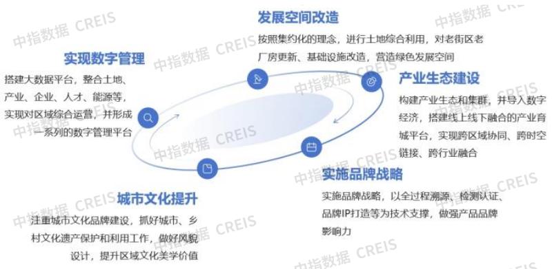 产业地产运营:从空间开发走向产业生态运营,深挖产业发展潜力,开创行业发展新格局。对于综合性大型房企来说,在园区策划、开发、建设、运营方面的经验及全国的产业资源具有先天竞争优势,通过与政府平台创新合作模式实现产业生态、运营服务、区域布局等环节互补式发展,弥补合作双方各自短板,形成“1+1>2”的发展合力。