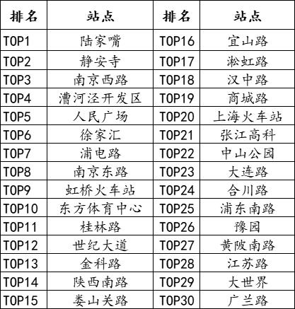 人流量前三的分别是陆家嘴、静安寺、南京西路。