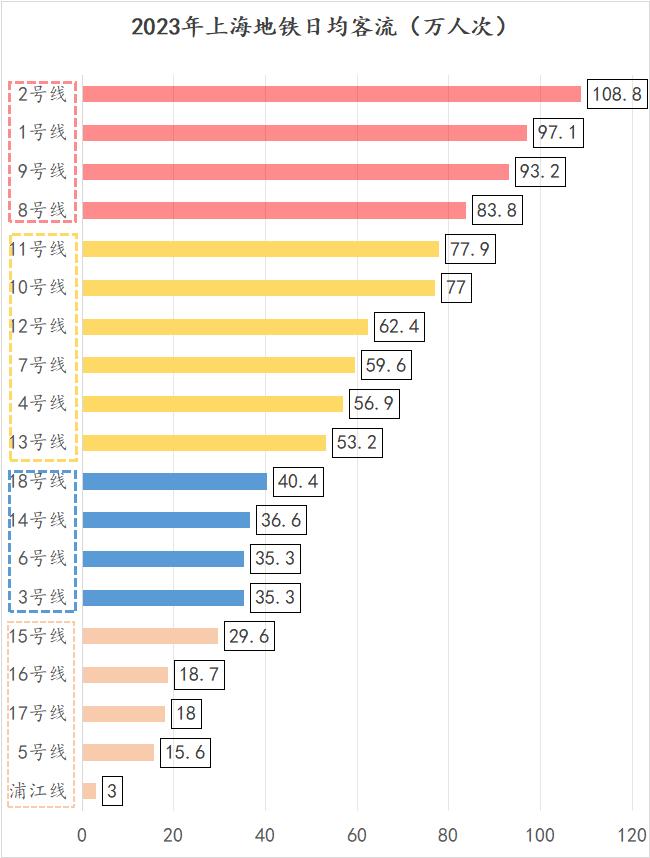 尤其2号线,日均108.8万人次。