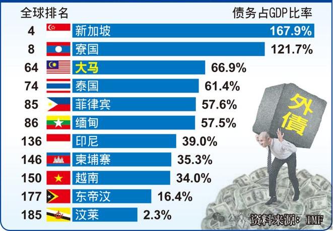 根据国际货币基金组织(IMF)的最新数据显示,新加坡2023年的外债在东南亚国家中排名首位,债务占国内生产总值的比率高达167.9%!