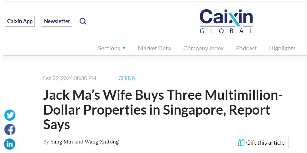媒体关于马云妻子在新加坡置业的报道