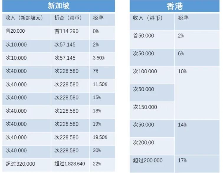 新加坡个税和中国香港个税比较
