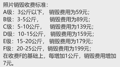婚纱照销毁按重量计费,划分了7级标准,销毁费用从59元到199元不等。刘玮说,他们目前的客单价大概在106元。