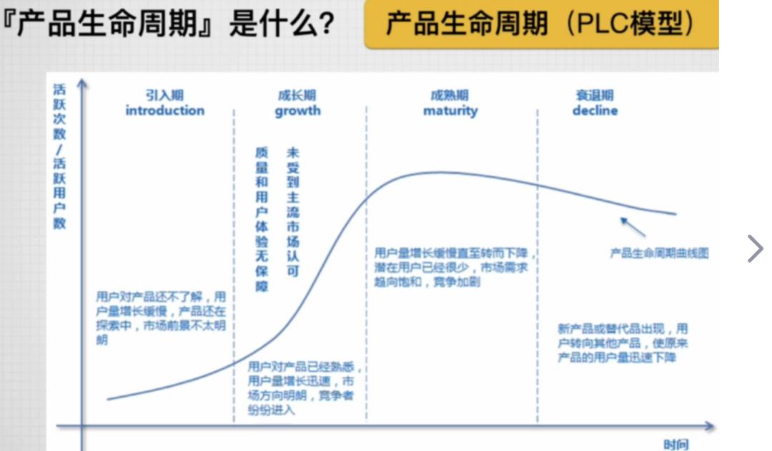 所以我们会通过一些方法论,比如产品生命周期来确定产品当前的阶段,做好功能迭代的计划。