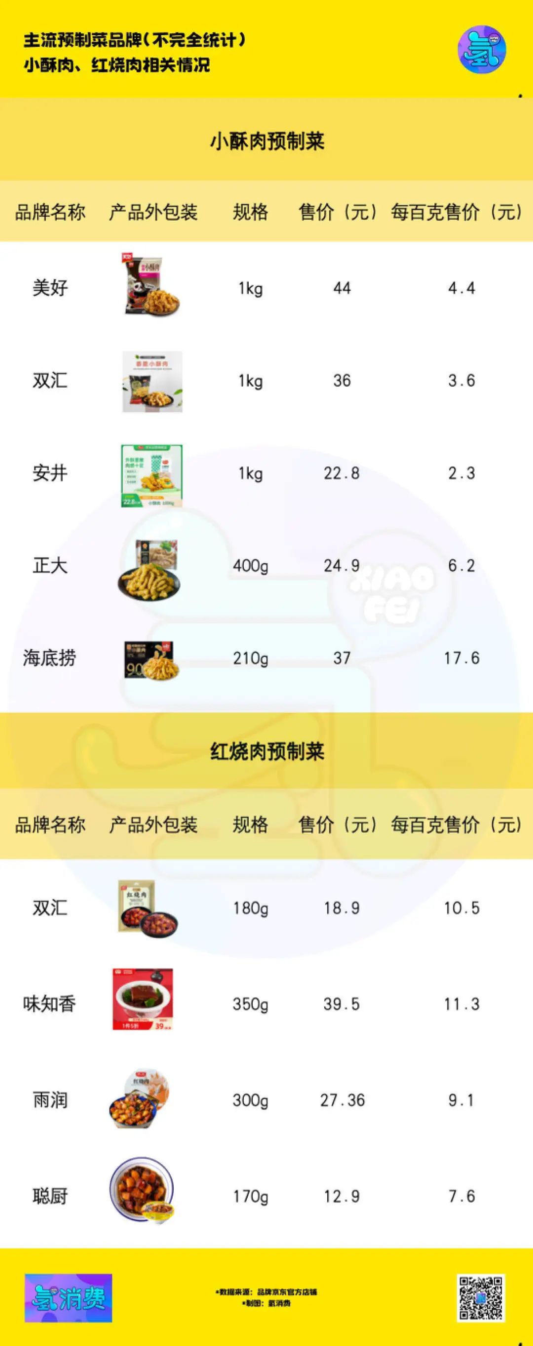 在传统中式餐饮店里,能够被很多食客称为“硬菜”的品类大多都和猪肉有关,如红烧肉、脆皮肘子、蒜香排骨、粉蒸肉等等。现在包括这些耳熟能详的大菜在内,也纷纷加入了预制菜的队列。