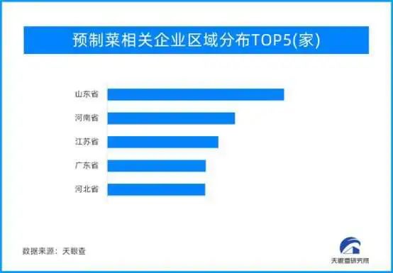 从地域分布上看,山东、河南以及江苏三地,预制菜相关企业数量最多,分别拥有8400余家,6100余家以及5300余家;从成立时间来看,32.1%的相关企业成立于1-5年内,成立于1年以内的相关企业占10.3%。