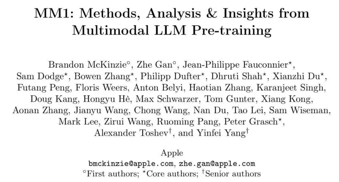 MM1 是一个具有最高 30B(300 亿)参数的多模态 LLM 系列,这是苹果在多模态大模型的最新研究成果。