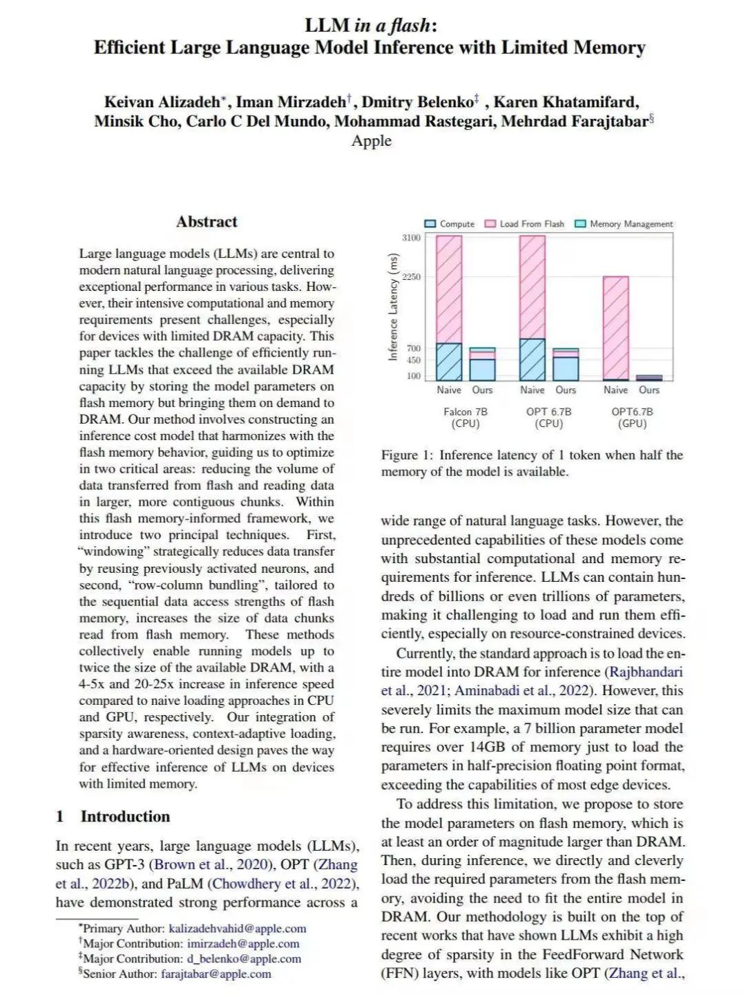 早在去年底,苹果在名为《闪存中的大型语言模型:在有限内存下高效的大型语言模型推理》的论文中,就提出了大模型落地 iPhone 等「内存有限」设备的方法。
