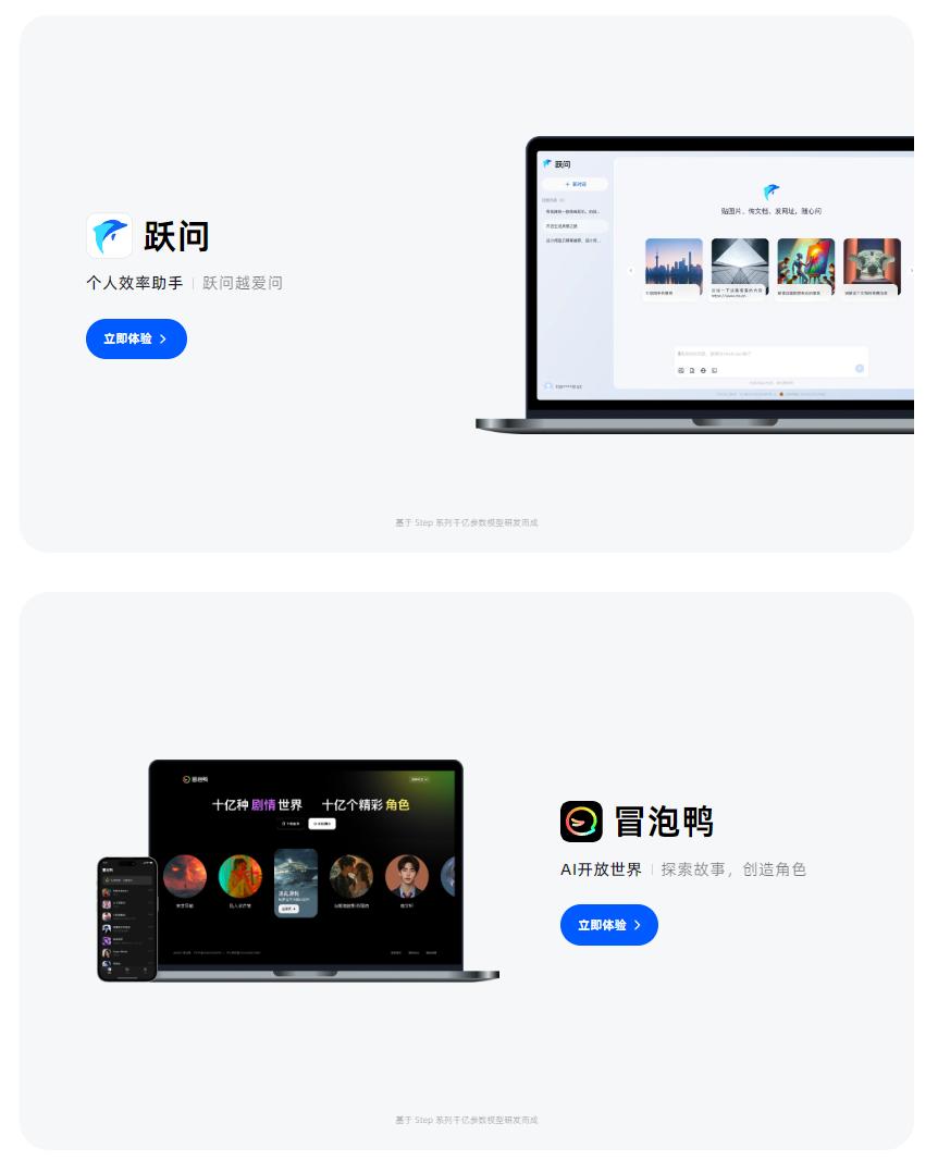 「跃问」和「冒泡鸭」| 来源:阶跃星辰官网