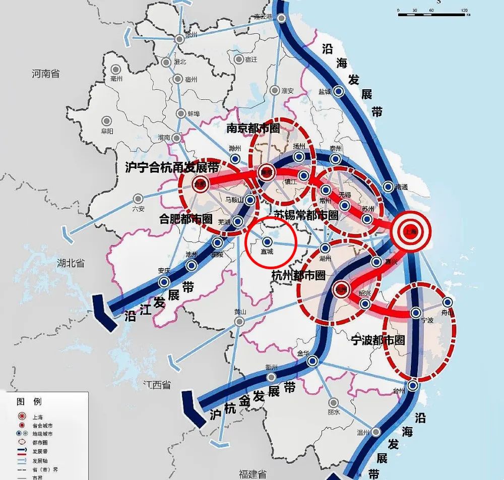 长三角一体化浪潮中,作为长三角G60科创走廊、南京都市圈和杭州都市圈的观察员城市,以及即将获批的上海大都市圈规划,宣城是长三角为数不多的“一廊三圈”城市,也深度融入到长三角现代产业体系。