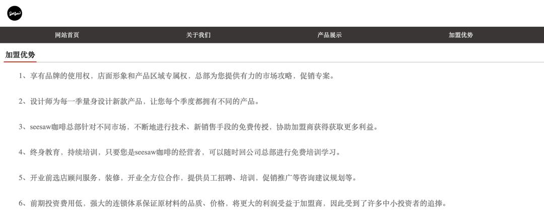 iBrandi品创获悉,连锁咖啡品牌Seesaw或许也将开放加盟。据赢商网报道,目前,品牌5家特许经营门店已开业。