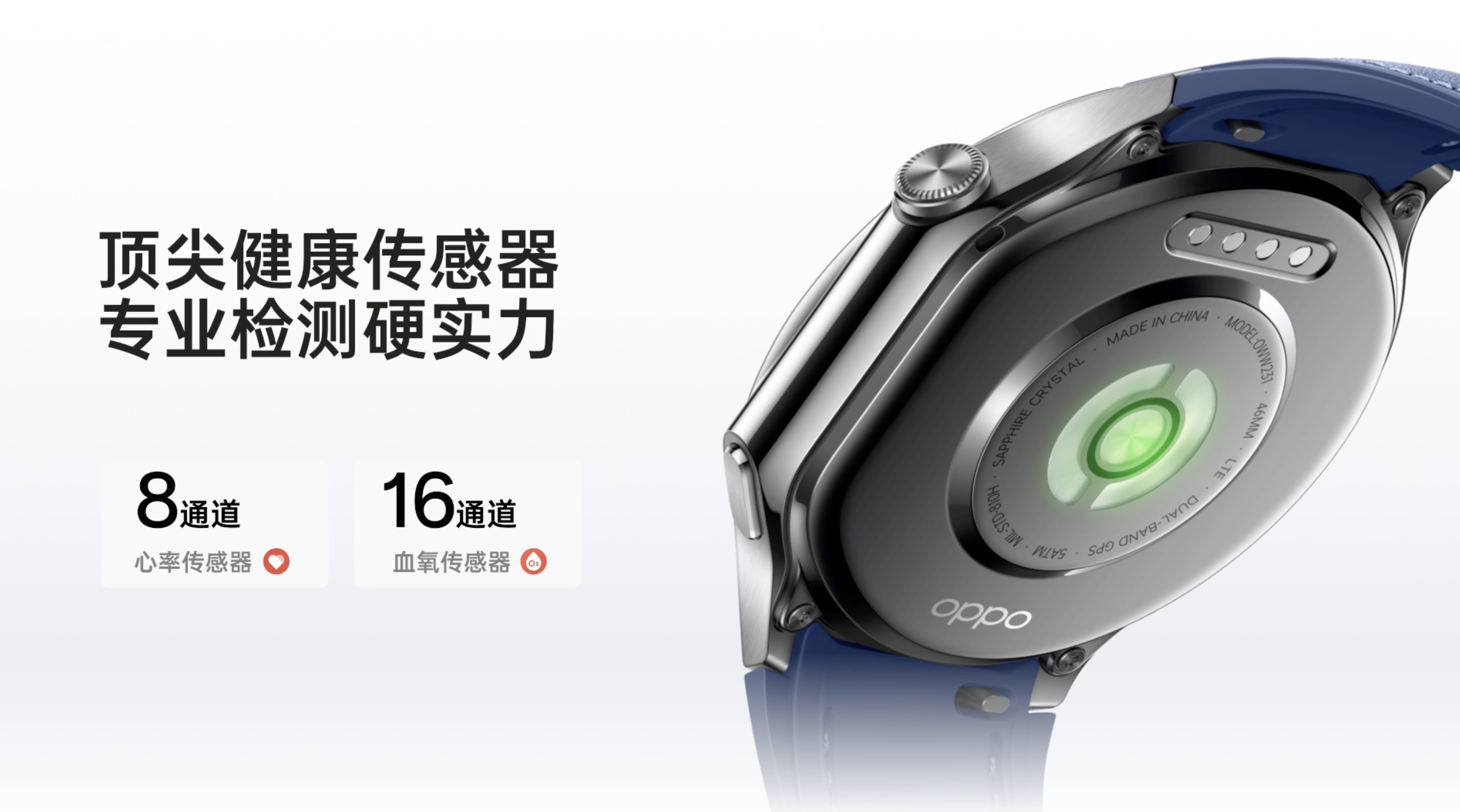 OPPO Watch X 搭载了旗舰级别的8通道心率和16通道血氧传感器,采用了全新光学结构设计,让有效感光面积提升了40%以上,使手表能够捕捉更多高质量的信号,从源头上提升数据准确率。同时,OPPO 健康实验室建立业内首个数字手腕数据模型库,仿真模拟不同生理状态下的血液循环以及组织光学特性,有效降低了在不同肤色和手腕状态下的监测误差。此外,OPPO 还建立健康大数据库,以大量真实测试数据和行业前沿课题研究,持续助力提升健康监测的准确性。