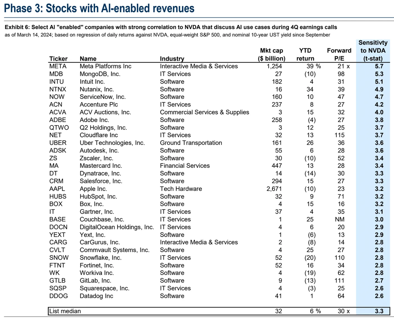 第三阶段,关注能够通过 AI 技术增加收入的公司;