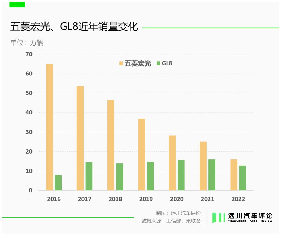 2016年,伴随着二孩政策的放开,新组建家庭规模的扩大,中国市场MPV销量达到了223万的历史性高峰。当年的MPV销冠是均价6万元,一年卖了65万辆,一度被福布斯评为“世界上最重要的车”——五菱宏光。在汽车消费首购占比超过60%的当时,价格低廉的五菱宏光很好地满足了中小城市个体户、小家庭们客货两用的需求。