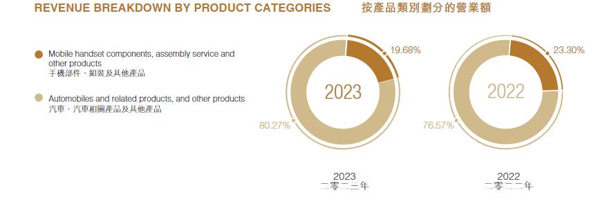 手机部件及组装业务的营收为1185.77亿元,同比增长20%,占总收入的比例为19.68%,显然,比亚迪汽车相关板块收入比重在去年进一步提升。