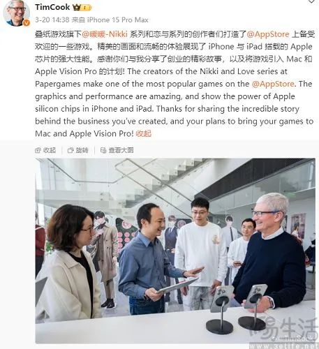 事实上,苹果方面对此也已经体现出了非常明确的规划,并且在Vision Pro正式上市前相当长的一段时间里,就一直在完善这一方面的布局。去年库克到访中国时,就曾对国内开发者在Vision Pro上的工作表现出了极高的期待,并对所见到的成果表示“感到非常兴奋”。这样的表态不仅体现了苹果对于国内开发者的重视,更显示出其对于xR内容生态建设的重视程度。